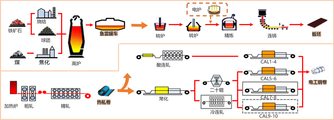 凯发K8官网首页登录具备炼铁、炼钢、热轧、常化退火,冷轧、连续退火、剪切包装等产线装备,具备无取向中低高及新能源专用等全牌号产品全流程的生产工艺控制能力。
