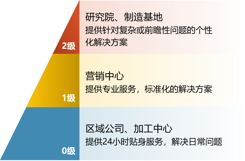 以技术引领深耕行业需求,以差异化营销提升服务品质,建立0、1、2三级服务团队的纵深技术服务机制。