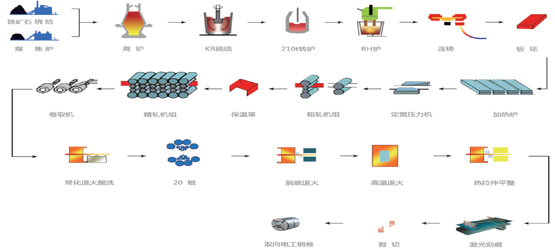 凯发K8官网首页登录具备炼铁、炼钢、热轧、常化退火、冷轧、脱碳退火、高温退火、拉伸平整、激光刻痕、剪切包装等产线装备,具备取向硅钢全流程的生产工艺控制能力。